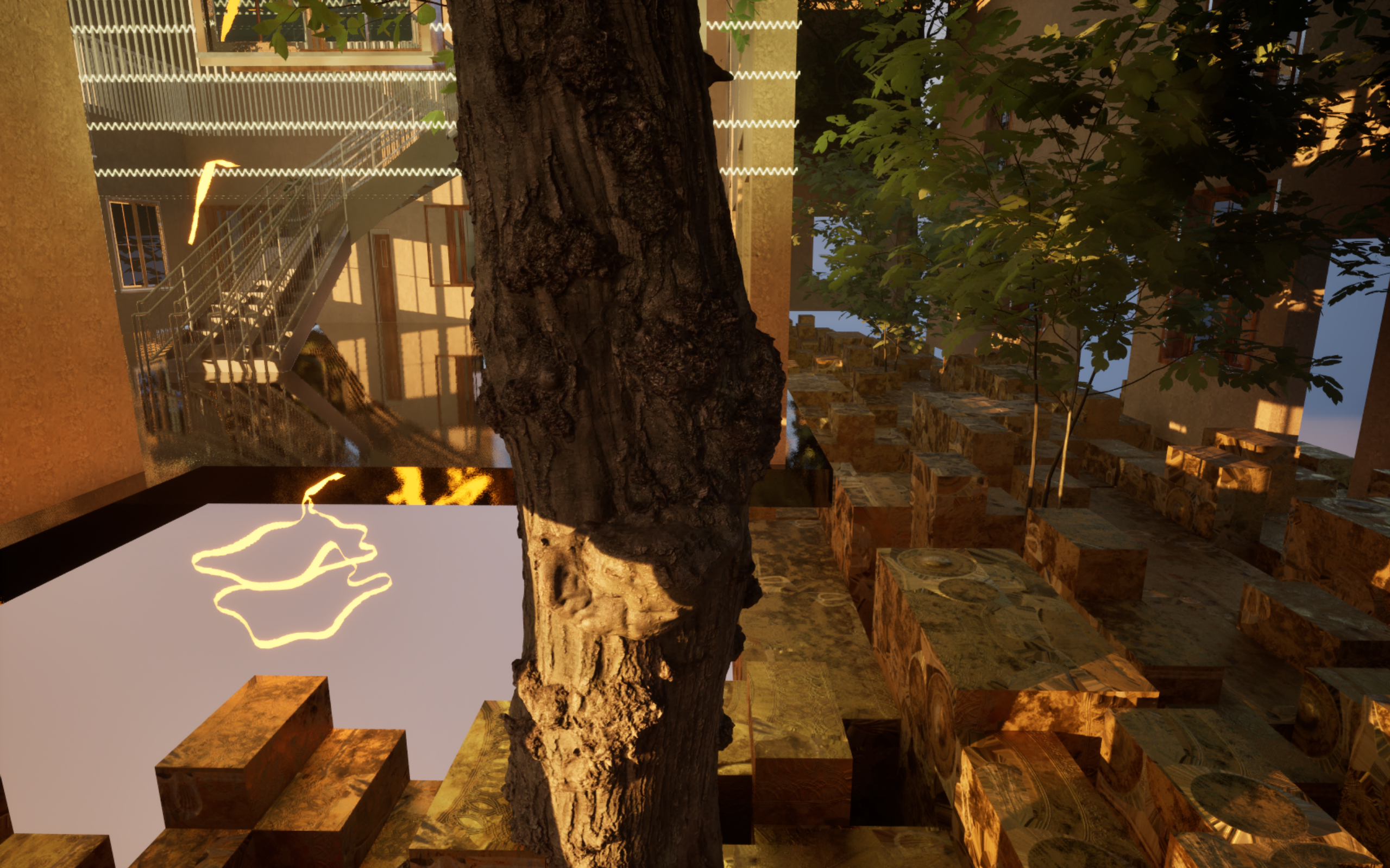 - Unreal Engine to synthesize walkways, topographies, neighborhoods, and weather conditions to further create an interactive open source virtual reality, where participants can engage, add, and digitize their photographs, letters, and passed down artifacts in order to preserve familial memory. Utilizing C++ in Unreal Engine to ignite blueprints for interactive environments and asset reactions through descriptive technical language to further engage with our correspondents and participants.