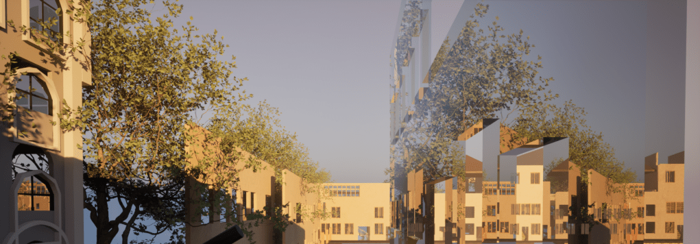 To foresee the rest, I decided to start digitizing what I can visualize from my familial testimonies, cross-examined, and a few archived photographs of Nazareth, Palestine. Where a memory of a memory takes place, sounds of Fairuz and consistent fragmentations. A disturbed topography with depopulated streets, infrastructures taken apart: